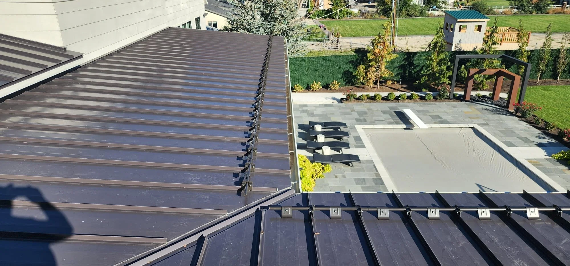 Metal siding on round structure with TPO flat roof completed for one of our clients.